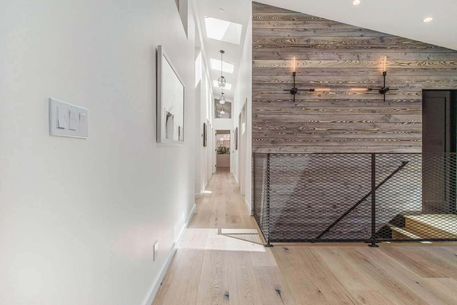 The Greenbrae house is a modern rebuild of a traditional ranch style home with a thoughtful blend of architecture and design. The front façade combines authentic Shou Sugi Ban cedar wood siding with rich, deep black brick and stucco. The warmth of natural light, vaulted ceilings, and great indoor/outdoor flow are present throughout.